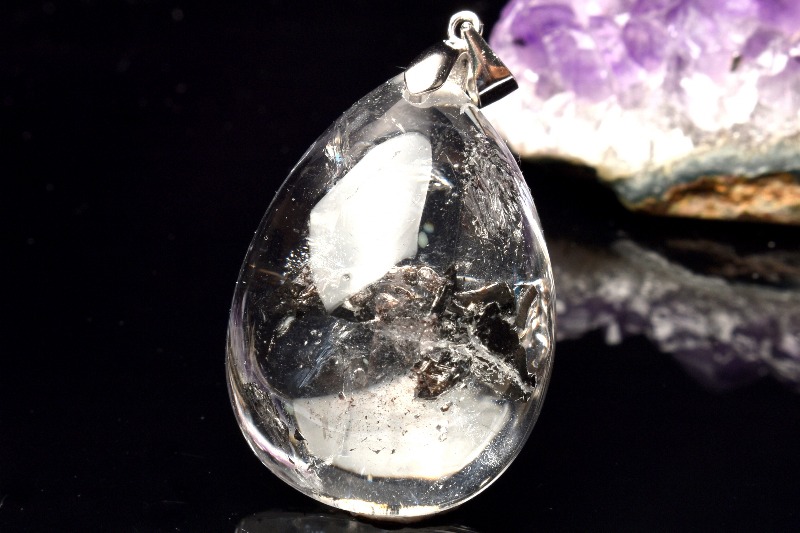 【1点物】Silver925◇ヒマラヤ産 エレスチャルクォーツ 32x23mm ドロップ ペンダントトップ _PC1886