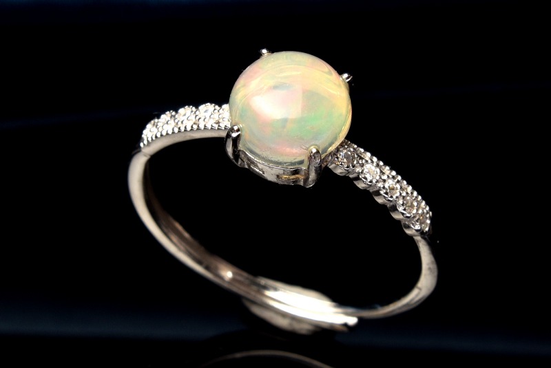 Silver925◇虹色の遊色 プレシャスオパール 7mm ラウンド 指輪リング(サイズ調整可) 1個売り _PRG2231-1