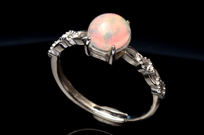 Silver925◇虹色の遊色 プレシャスオパール 7mm ラウンド 指輪リング(サイズ調整可) 1個売り _PRG2231-2