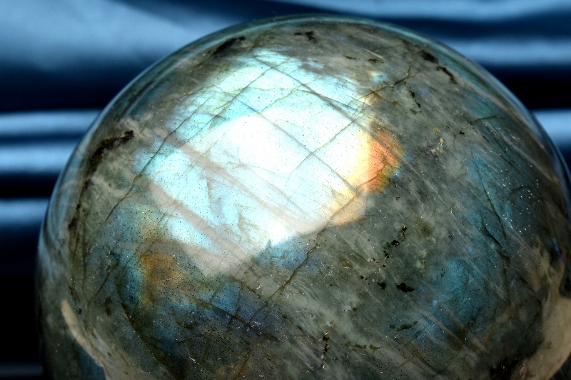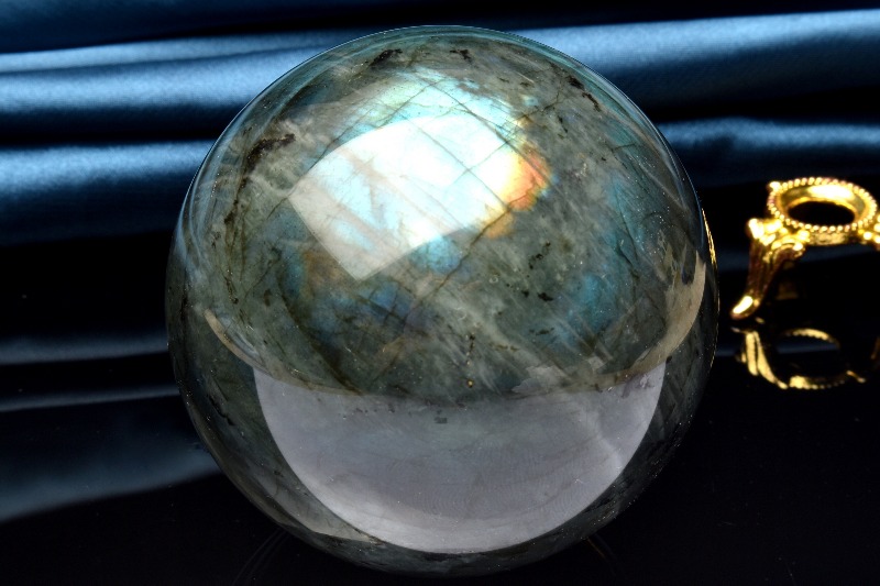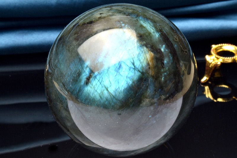 【1点物】幻想シラー◇迫力の大玉 ラブラドライト 67mm 丸玉(台座付き) スフィア _CG6027【宅急便のみ】