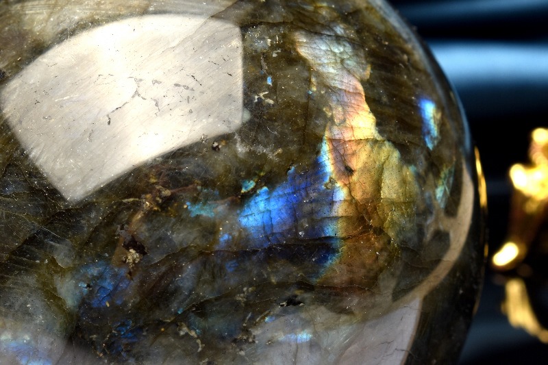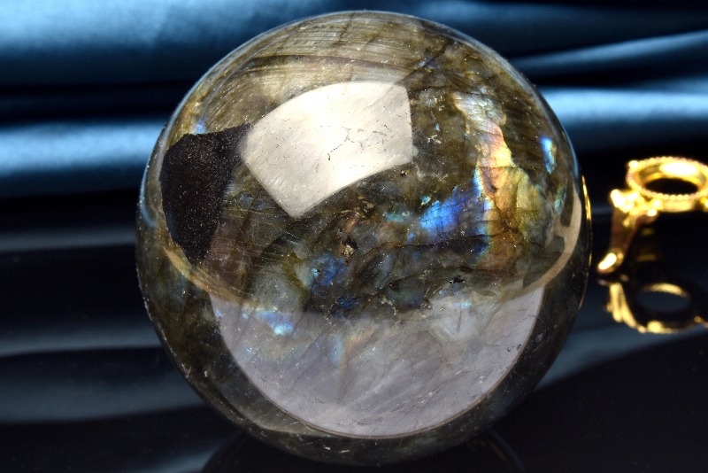【1点物】幻想シラー◇迫力の大玉 ラブラドライト 68mm 丸玉(台座付き) スフィア _CG6028【宅急便のみ】