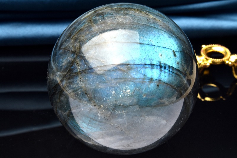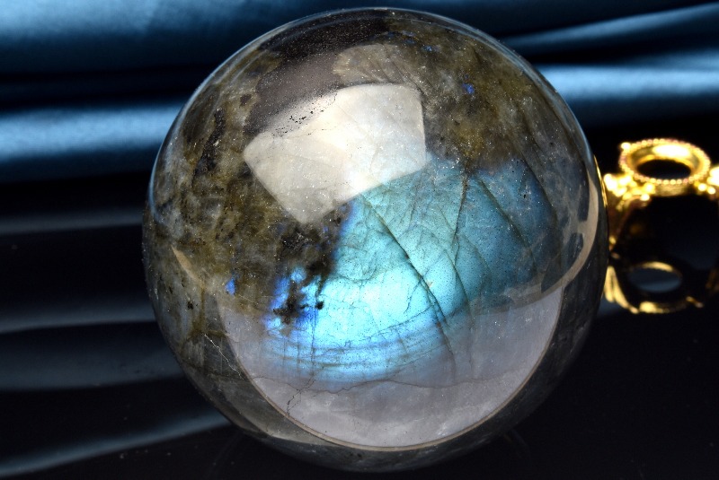 【1点物】幻想シラー◇迫力の大玉 ラブラドライト 69mm 丸玉(台座付き) スフィア _CG6029【宅急便のみ】