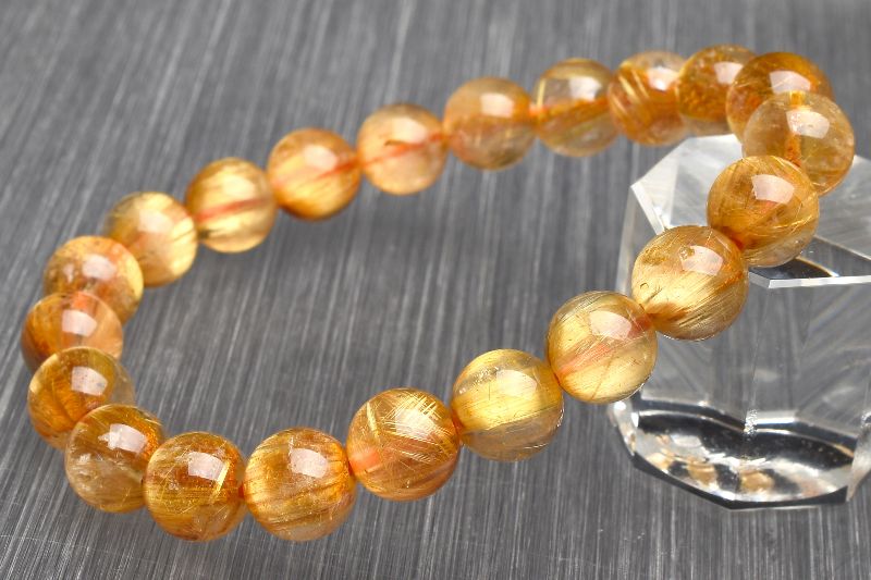 材質ゴールドタイチンルチルクォーツ 9mm 産地:ブラジル