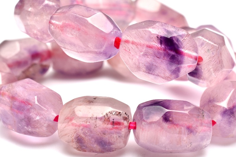パワーストーンの定番アメジストに、細かなゲーサイトやレピドクロサイトが入っているアメジストスーパーセブンです。