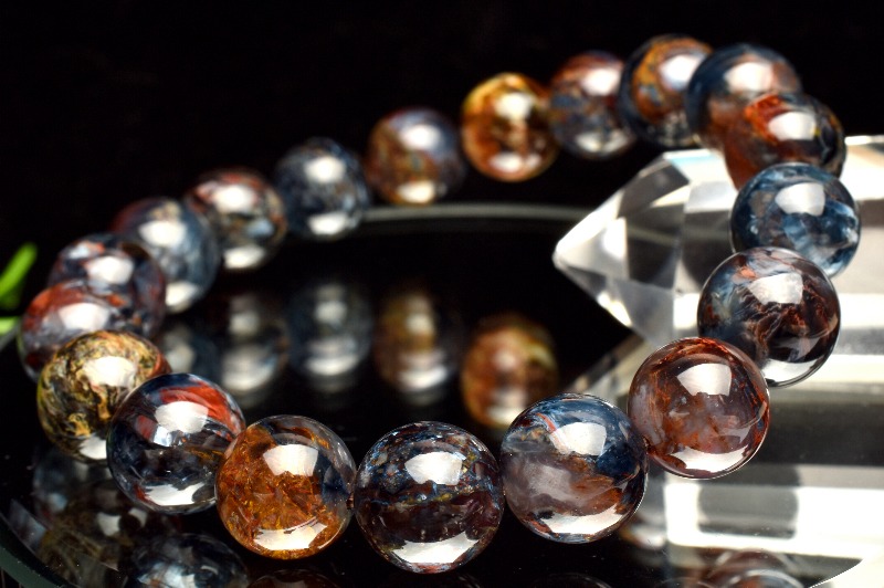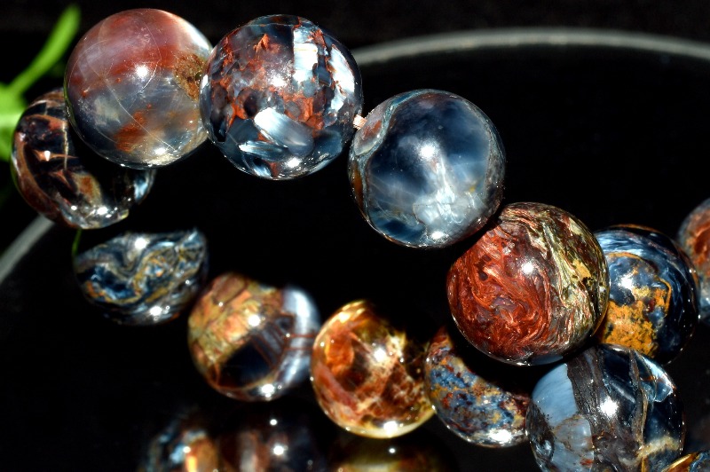 一般的にはタイガーアイ系の茶褐色が多いですが、ブルータイガーの青系もあり、茶と青の混じったものもあります。