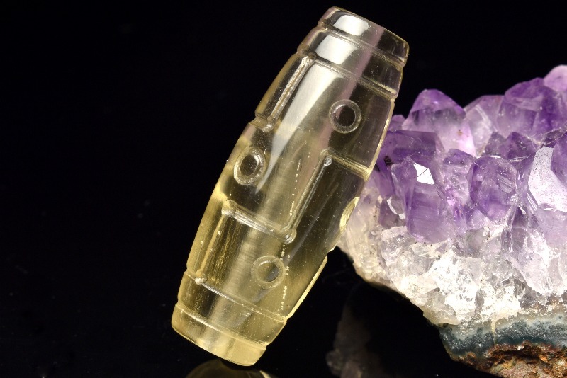 【1点物】AAA激レア☆透明レモンカラー リビアングラス 28x10mm 九眼天珠(貫通穴) ビーズ _PC1980