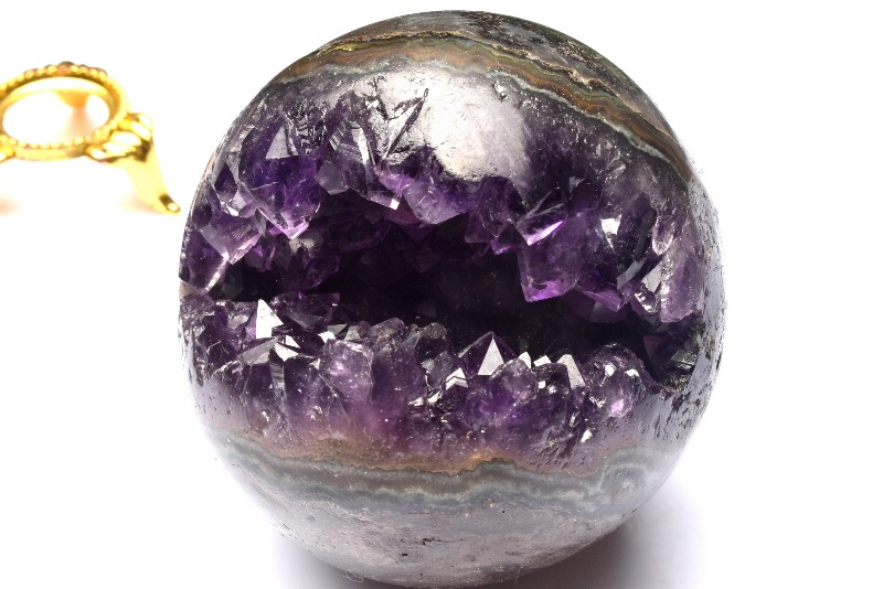 【1点物】縁起物! アメジスト 64mm 丸玉(台座付き) 笑口 ジオード スフィア _CG6049