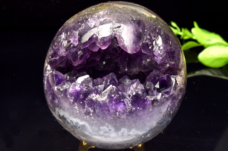【1点物】縁起物! アメジスト 66mm 丸玉(台座付き) 笑口 ジオード スフィア _CG6052