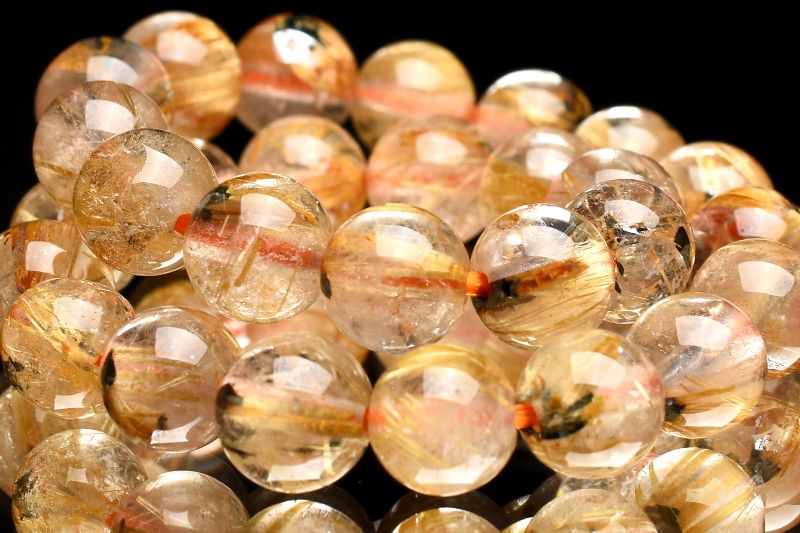 材質ヘマタイトインタイチンルチルクォーツ 7mm 産地:ブラジル