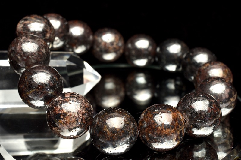 【1点物】サハラ砂漠産 コンドライト隕石(サハラNWA869隕石) 13.5mm ブレスレット _M8553