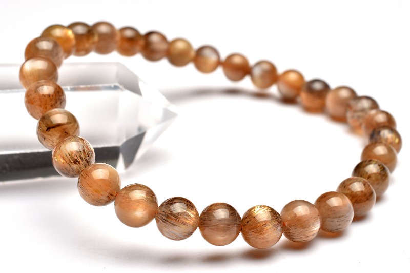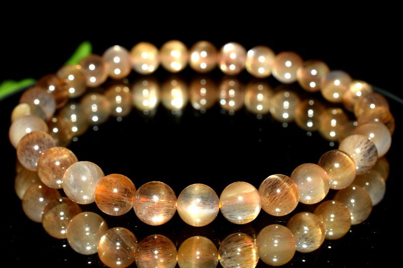 【1点物】2つの輝き◇インド産 ブラックサンムーンストーン 6mm ブレスレット _M8644