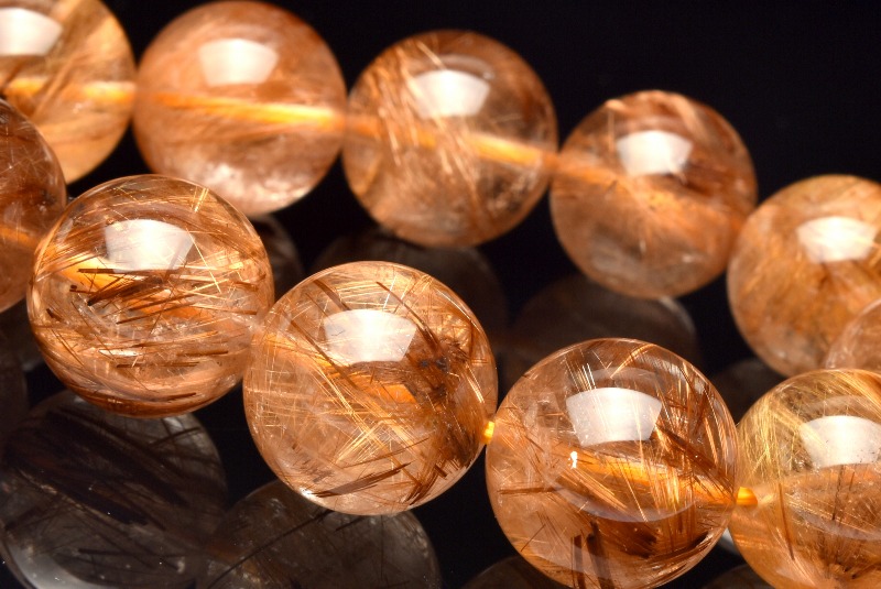材質タイガータイチンルチルクォーツ 13-13.5mm 産地:ブラジル