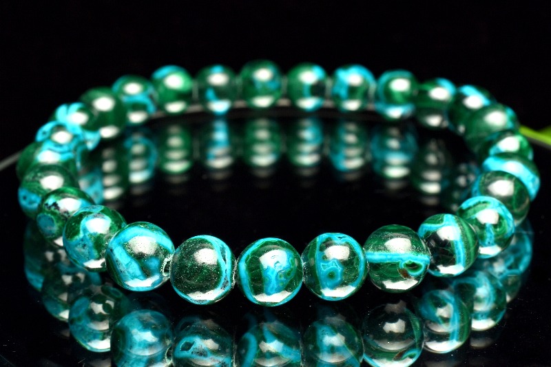 【1点物】AA+☆アメリカ産 マラカイトインクリソコラ 7mm ブレスレット _M8755