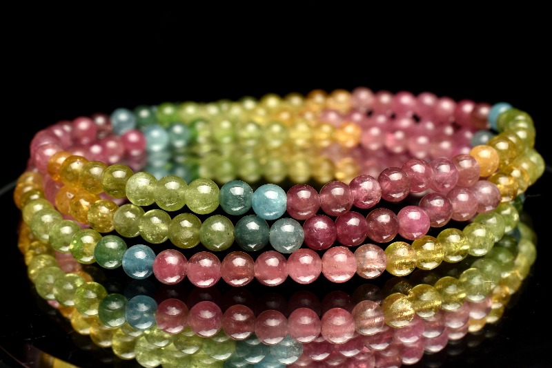【1点物】高品質◇マルチカラー MIXトルマリン 4mm 3連タイプ ブレスレット _M8850