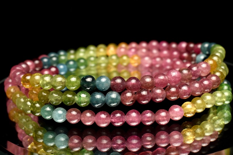 【1点物】高品質◇マルチカラー MIXトルマリン 4mm 3連タイプ ブレスレット _M8851