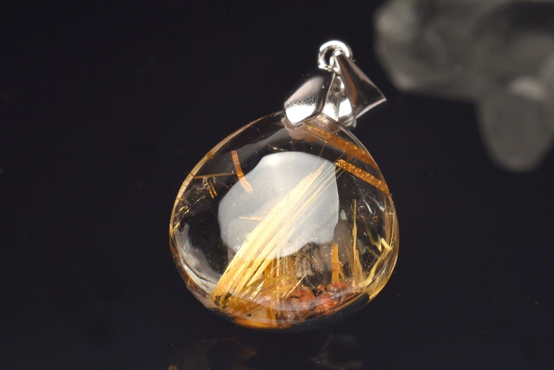 特徴・意味透明度が高い水晶の中に太い金針が内包され、力強い印象のペンダントトップです。