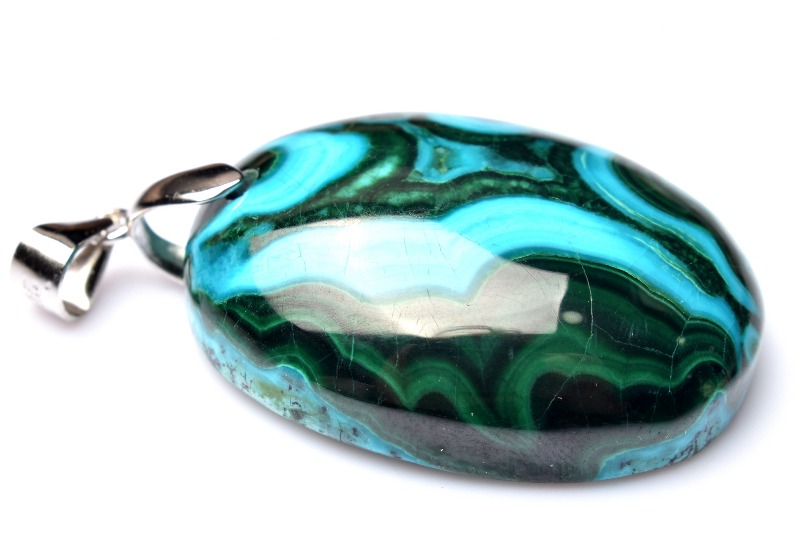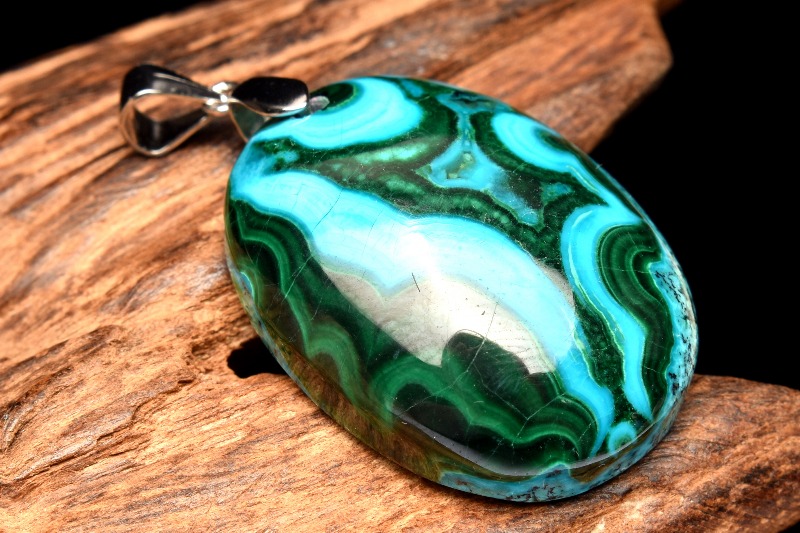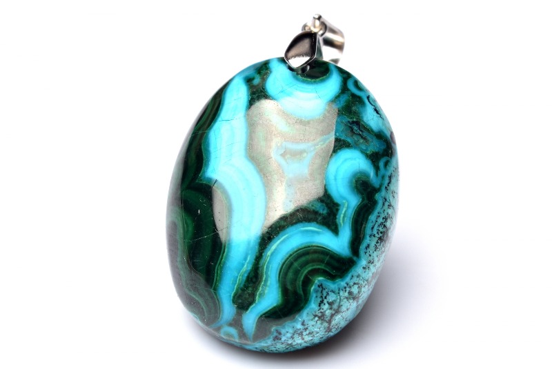 ブルーが本体の多くを占め、グリーンやブラウンなどのカラーが混ざり合って、出来ているため、丸く加工されたクリソコラは、宇宙から見た地球のような外観となっています。