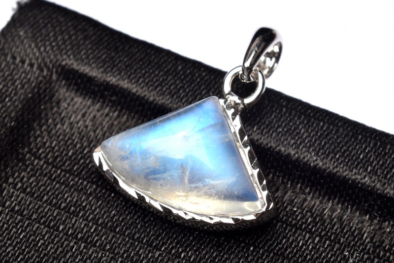 【1点物】Silver925◇インド産 ブルームーンストーン 8x13mm 扇形 ペンダントトップ _PC2264