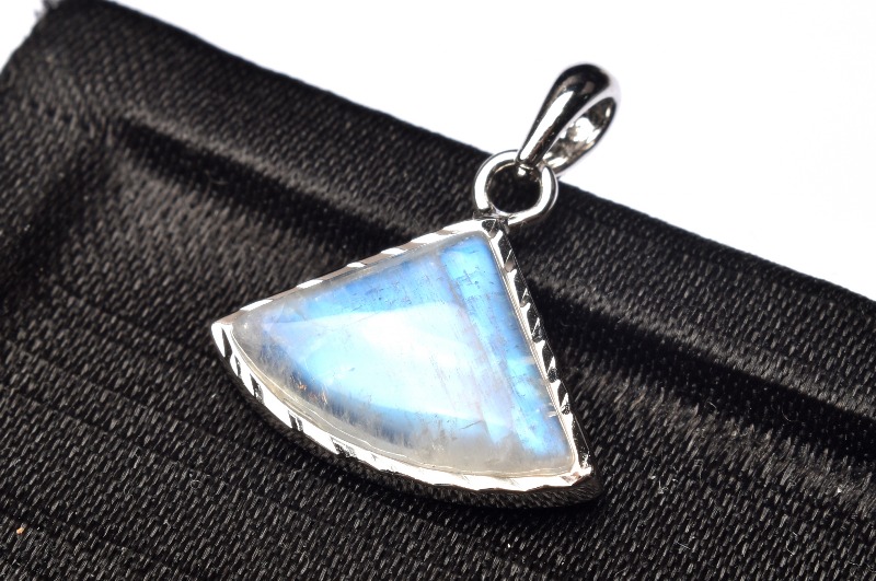 【1点物】Silver925◇インド産 ブルームーンストーン 10x15mm 扇形 ペンダントトップ _PC2265