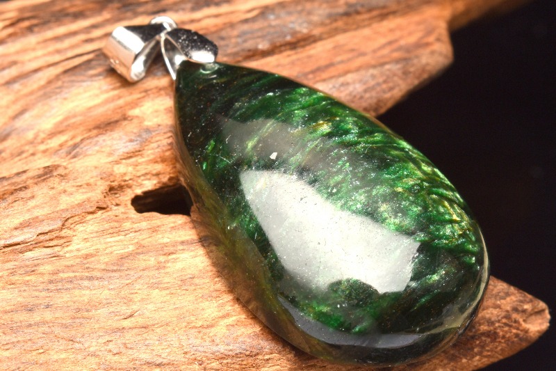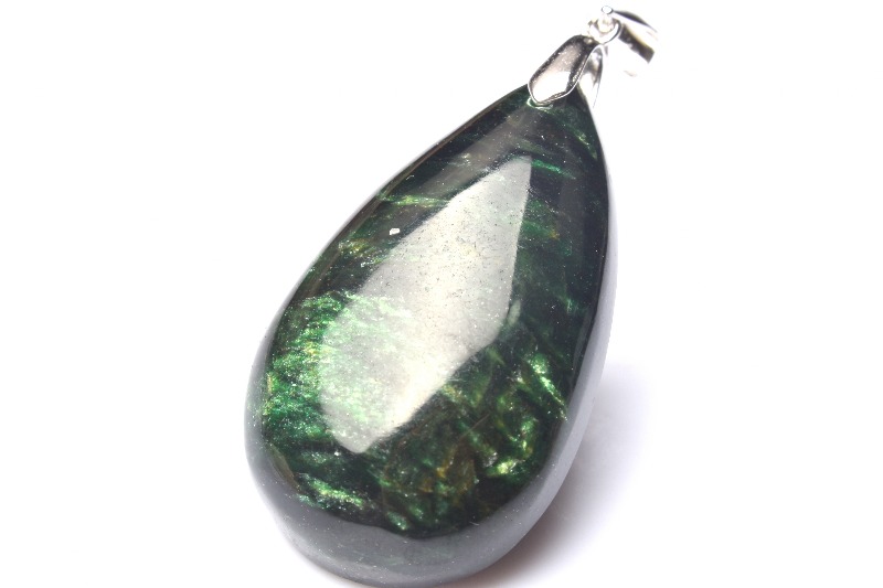 【1点物】Silver925◇マイカの輝き グリーンマイカ(フックサイト) 35x21mm ドロップ ペンダントトップ _PC2280