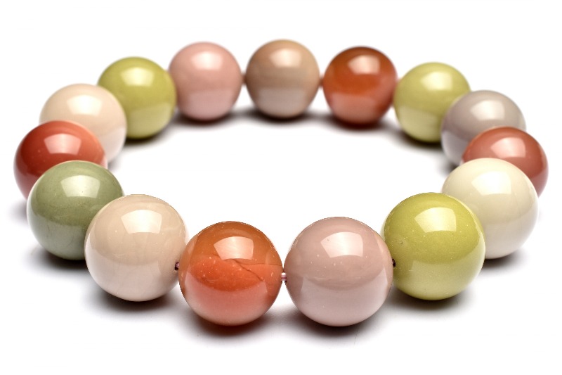 【1点物】天然◇マルチカラー 阿拉善(アラシャン)ゴビアゲート 13.5-14.5mm ブレスレット _M8893