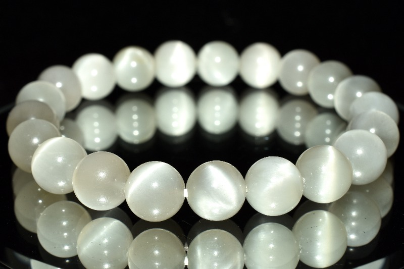 【1点物】キャッツアイ効果 ホワイトラビットヘアールチルクォーツ 8.5mm ブレスレット _M8898