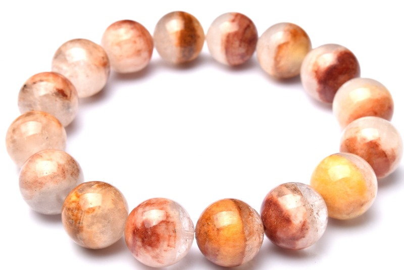 【1点物】希少色半々聚宝盆タイプ ガーデンクォーツ 13-14mm ブレスレット _M9064