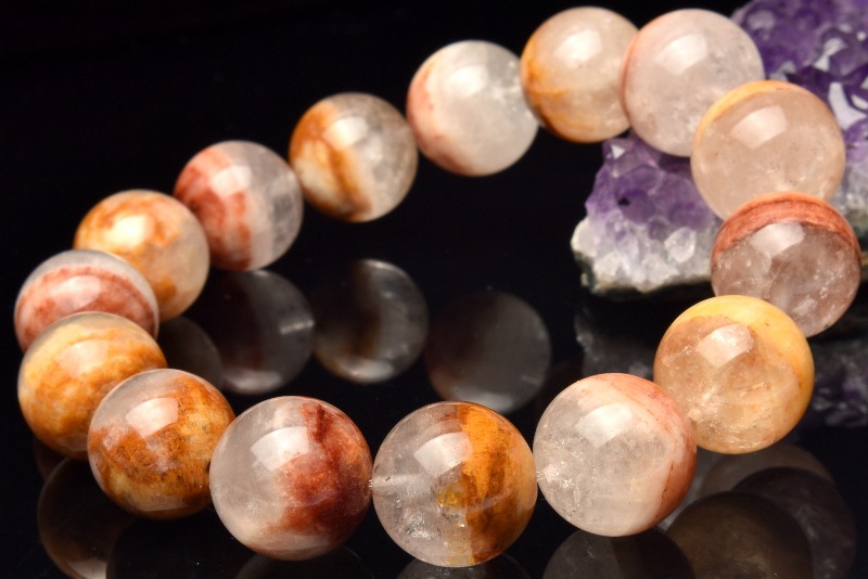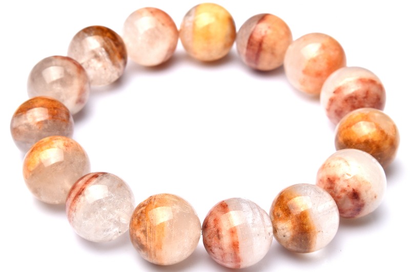 【1点物】希少色半々聚宝盆タイプ ガーデンクォーツ 14-15mm ブレスレット _M9066