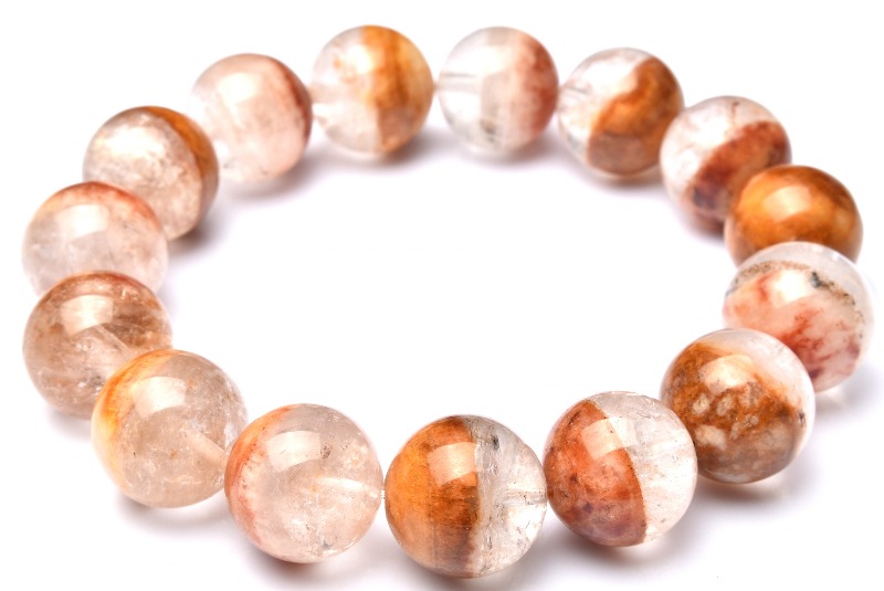 【1点物】希少色半々聚宝盆タイプ ガーデンクォーツ 14-15mm ブレスレット _M9068