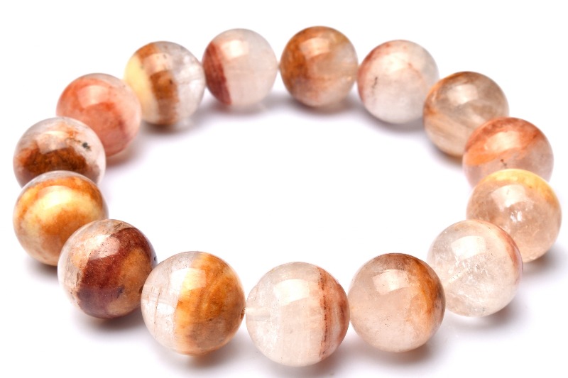【1点物】希少色半々聚宝盆タイプ ガーデンクォーツ 14-15mm ブレスレット _M9069