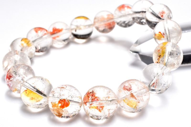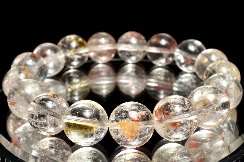 【1点物】高発色◇クリア オーロラクォーツ(ライモナイトインクォーツ) 12-13mm ブレスレット _M9214
