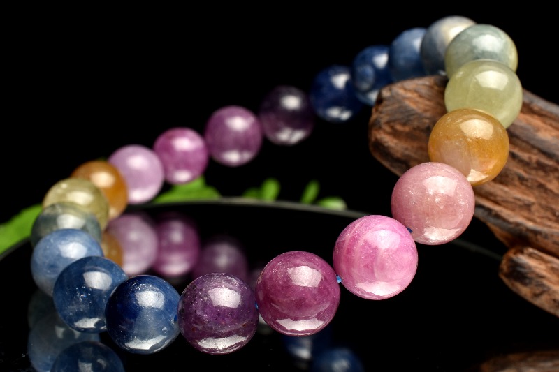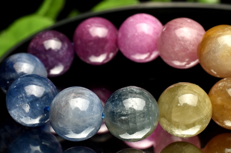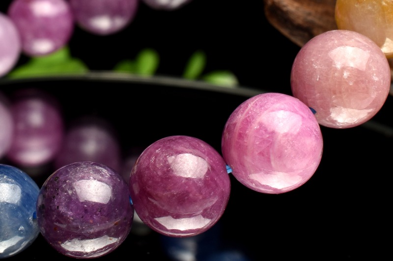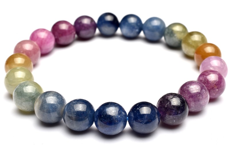 【1点物】南アフリカ産◇贅沢カラー MIXコランダム(ルビー・サファイア) 9.5mm グラデーション ブレスレット _M9259