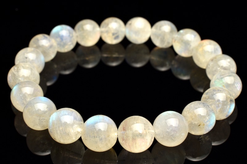 【1点物】AAオーロラシラー☆マダガスカル産 レインボームーンストーン 9.5mm ブレスレット _M9264