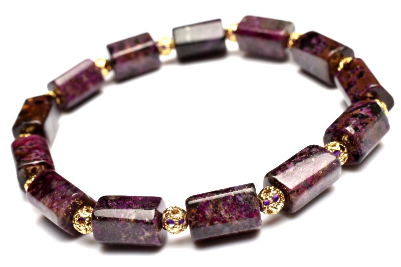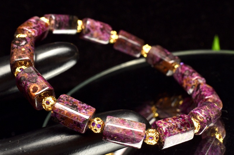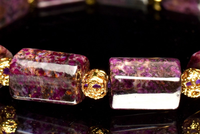 【1点物】希少形状 スギライト(杉石) 10-11x6.5mm チューブカット ブレスレット _M9339
