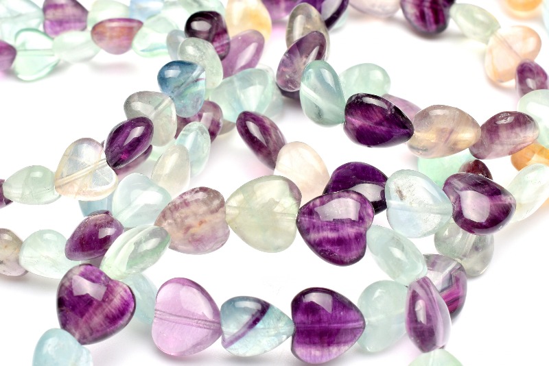 マルチカラー フローライト 9-10x10mm ハート ブレスレット 1個売り _BG5526-1