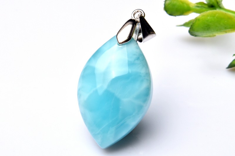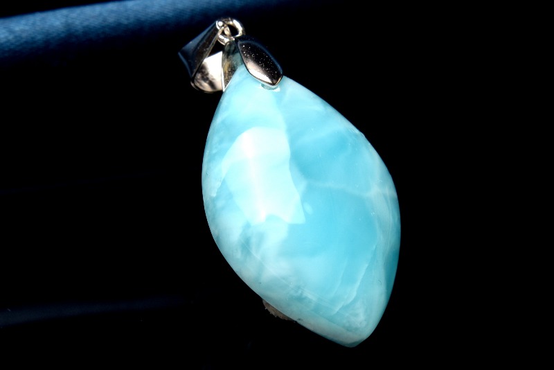 【1点物】Silver925☆AAA揺れるカリブブルー ラリマー 23x14mm マーキス ペンダントトップ _PC2328
