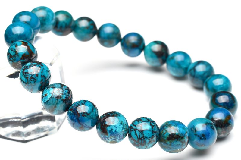 【1点物】高発色◇ペルー産 クリソコラ 9.5mm ブレスレット _U5482