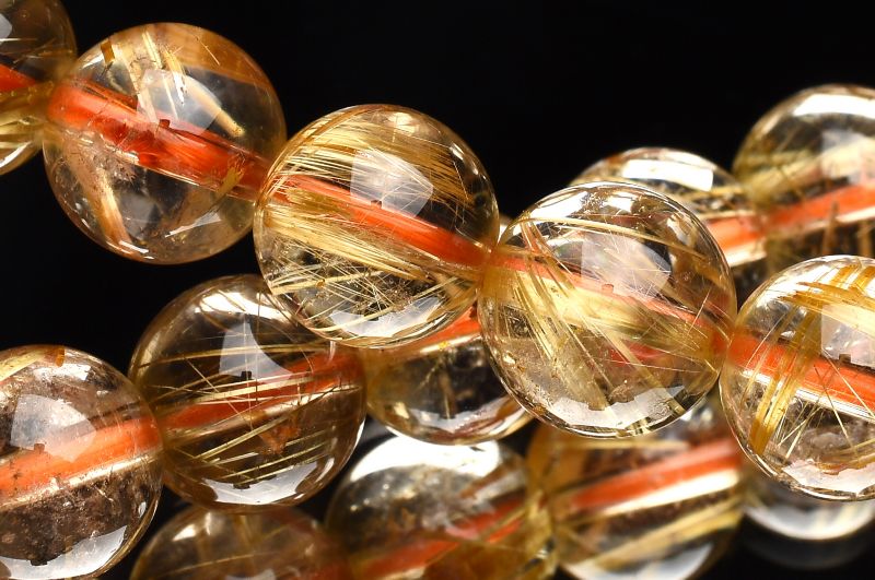 材質ゴールドタイチンルチルクォーツ 9mm 産地:ブラジル