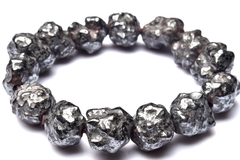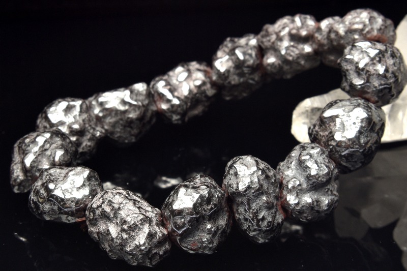 【1点物】希少◇エジプト産 メテオライト(鉄隕石) 13-18x13-18mm 原石 ブレスレット _M9372