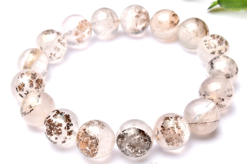 【1点物】レア共生! デンドリティックローズクォーツ 12-12.5mm ブレスレット _M9470