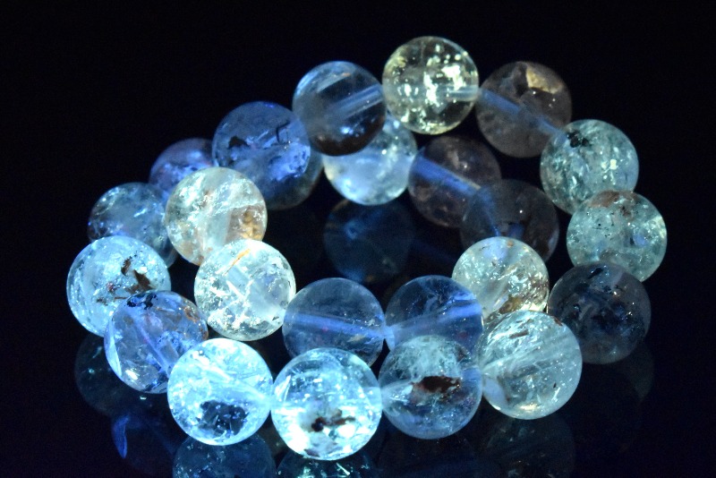 ブラックライトを当てるとオイルの部分が青緑に光る不思議な石オイルインクォーツ。