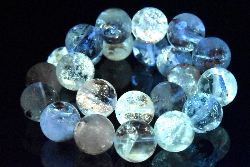 ブラックライトを当てるとオイルの部分が青緑に光る不思議な石オイルインクォーツ。
