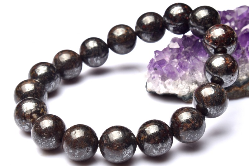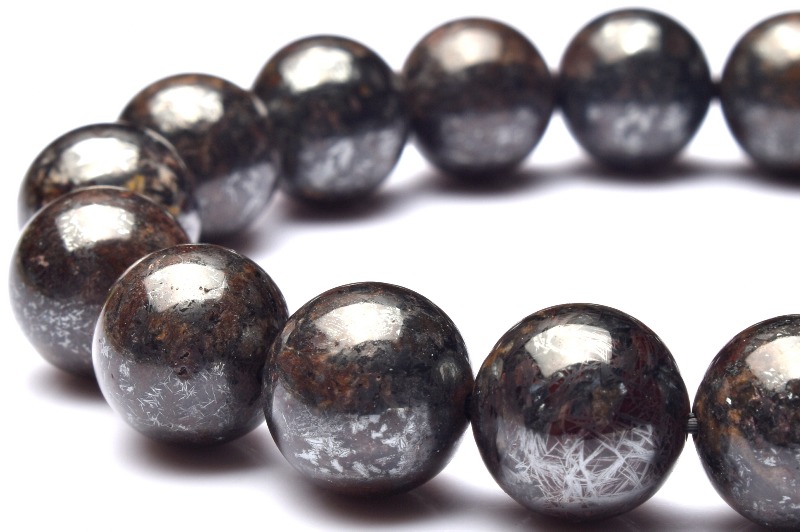 【1点物】サハラ砂漠産 コンドライト隕石(サハラNWA869隕石) 12mm ブレスレット _M9518
