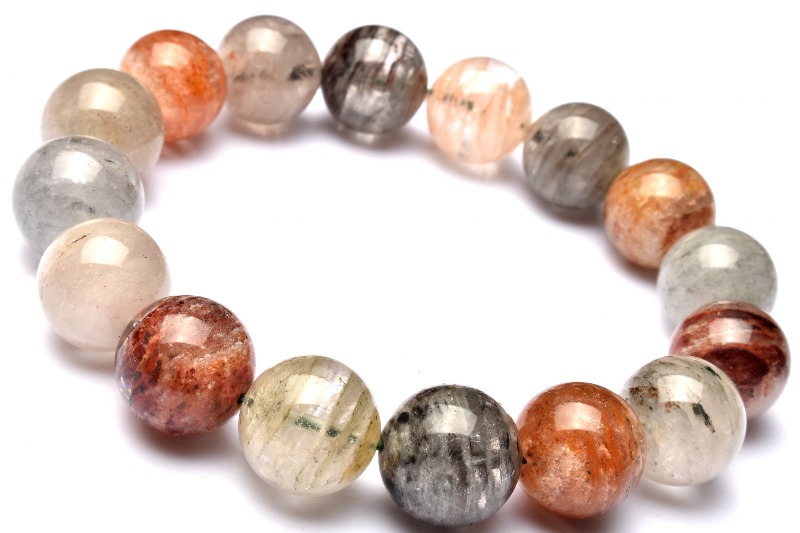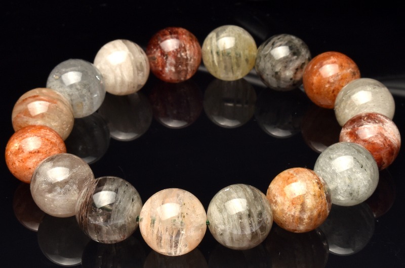 【1点物】地層模様◇マルチカラー ガーデンクォーツ 13mm ブレスレット _M9570