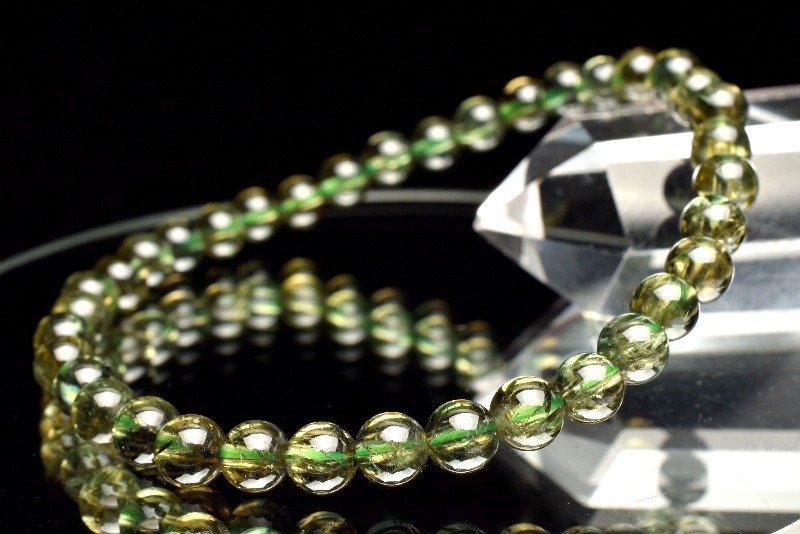 角度を変えると特有の多色性が見られ、グリーン〜イエローがかったグリーンへと変わる様はとても美しいです。