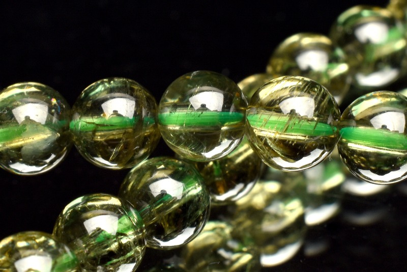 角度を変えると特有の多色性が見られ、グリーン〜イエローがかったグリーンへと変わる様はとても美しいです。