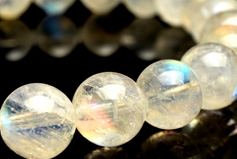 今回入荷分は非常に高品質でムーンストーン自体の透明感が高く、様々なカラーのレインボーシラーを一層ご堪能いただけます。
