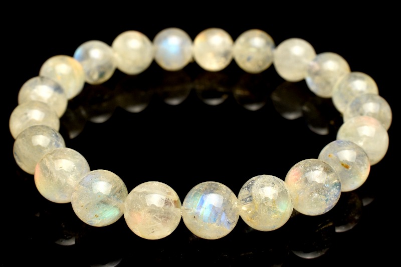 【1点物】AAオーロラシラー☆マダガスカル産 レインボームーンストーン 9mm ブレスレット _M9712