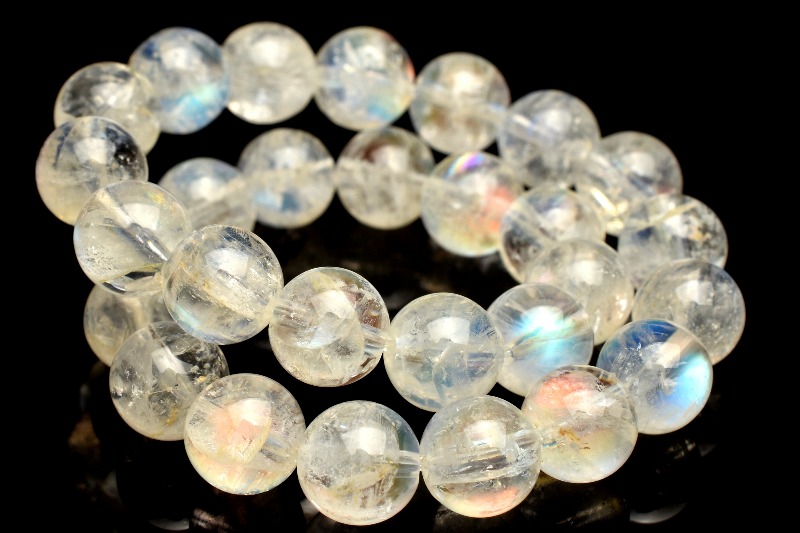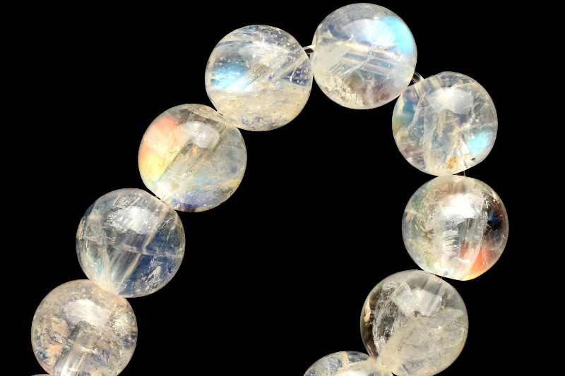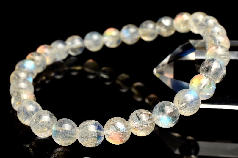 今回入荷分は非常に高品質でムーンストーン自体の透明感が高く、様々なカラーのレインボーシラーを一層ご堪能いただけます。