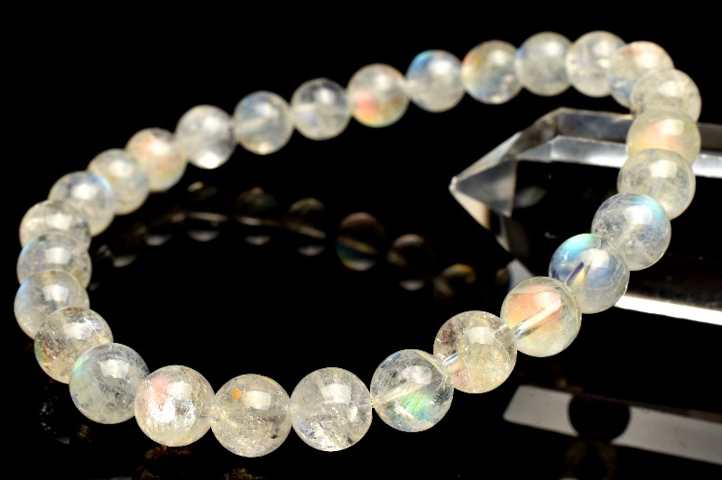 【1点物】AAA+オーロラシラー☆マダガスカル産 レインボームーンストーン 6.5mm ブレスレット _M9741